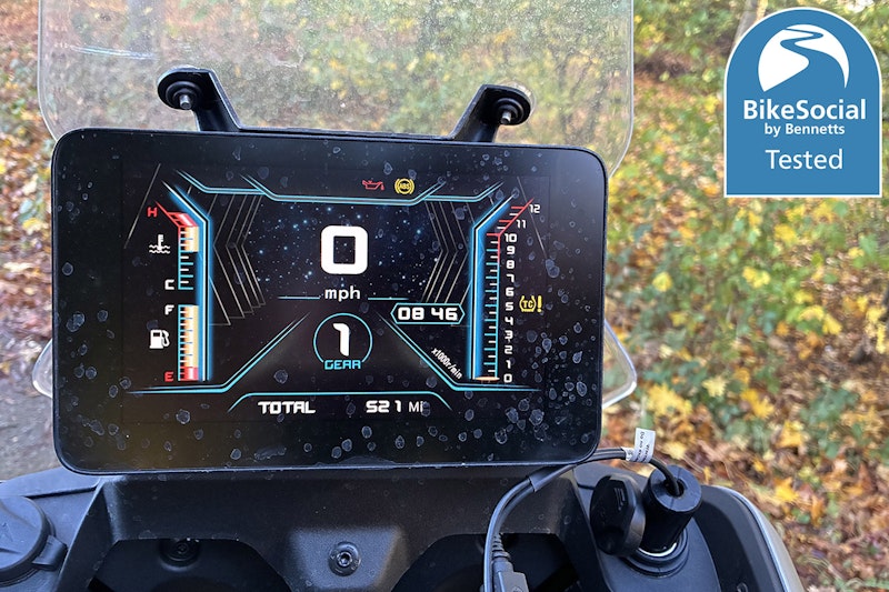 The SRT 600 S is very well equipped. It comes with crash bars, exhaust bash plate, centre stand (not sexy, but essential for regular chain maintenance on bikes used all year round), fog lights, tyre pressure monitors and LED lighting. Then there’s the heated rider seat, heated handlebar grips, 12v power socket, USB-C port, turn-by-turn navigation (via Bluetooth) and a 7in TFT dash. Oh, and there’s free three-piece aluminium luggage included too, for a limited time. All for £4899 on the road.