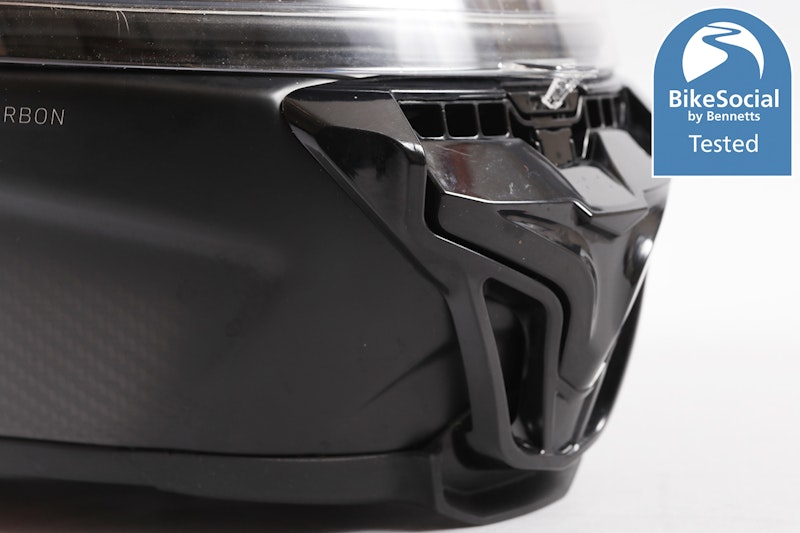 The chin vent blows up across the visor. It’s easy to operate, with just an open or closed setting. It feeds air in fairly well, though if it’s behind a screen you’ll not feel much movement.