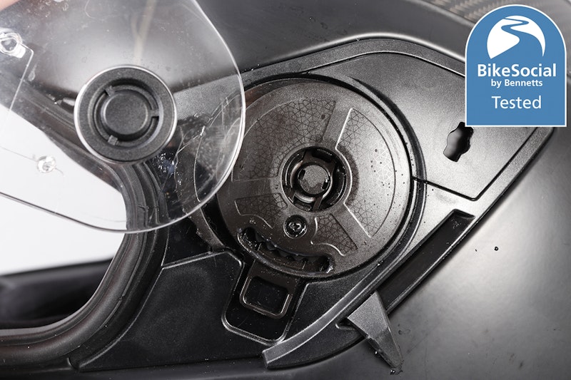 Fully locking the visor shut seals it completely, but it’s a very stiff action, taking some serious pressure to close the front tab down fully. Fortunately, even when it’s in the ‘nearly’ shut position the top seal prevents rain getting past, and it leaves only a small gap above the seal at the front bottom edge.