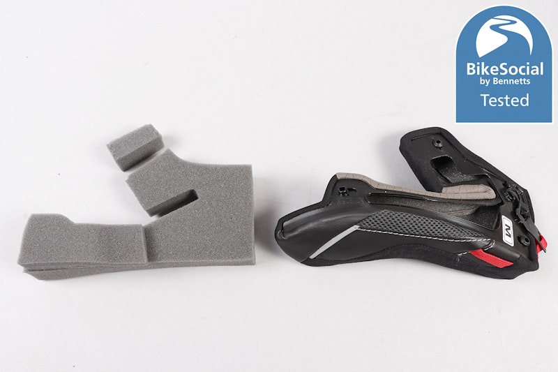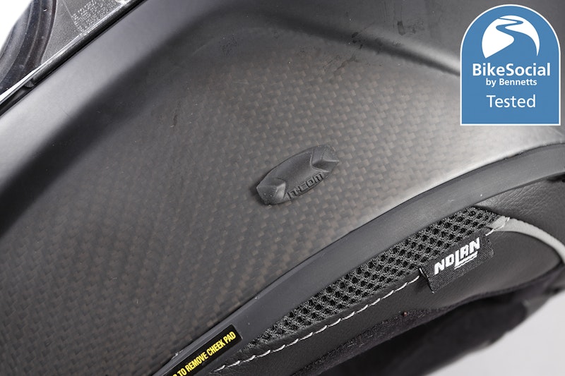 The X-552 is compatible with Nolan’s own N-Com Mesh and Bluetooth units, which are made by Sena. However, there is space to fit your own unit on the side, and popping off the silicone bung creates a flat surface for sticking it to. The speaker apertures are 38mm in diameter and 9mm deep.