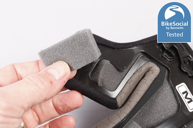 If you wear glasses, you might be disappointed with the claim of ‘eyewear adaptive’ moulded into the side as I found the arms of my specs wouldn’t easily fit in. However, the tops of the cheek pads have pre-cut sections of foam in the top edges – pull these out and tear them free and a much clearer channel is left. While still a little tight, my glasses went in a lot easier once I’d done this.