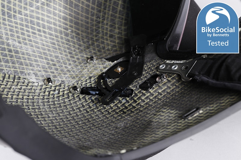 The X-552 has a double-D strap, which many people love for its always perfect fit, but in what’s arguably a more touring-focussed lid a micrometric ratchet might have been preferred by some.